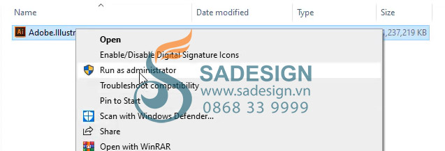 Bước 1 : sau khi giải nén, thì bạn sẽ nhận được một file cài đặt duy nhất. Sau đó thì hãy nhấp chuột phải vào file và chạy với quyền Run as administrator ngay nha