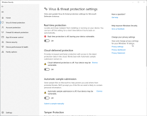 Tắt phần mềm diệt virus và Windows Security trên máy tính của bạn.