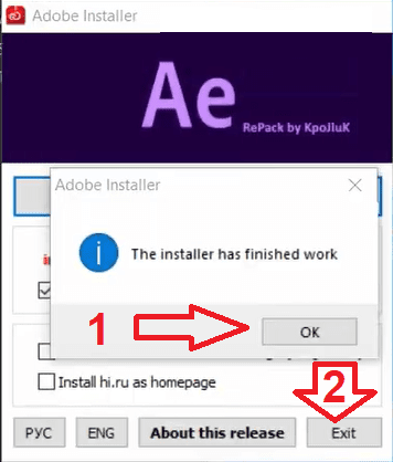 Hoàn thành cài đặt, có thông báo như hình. Chọn OK và Exit để tắt cài đặt.