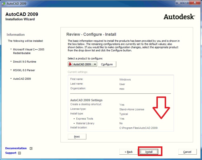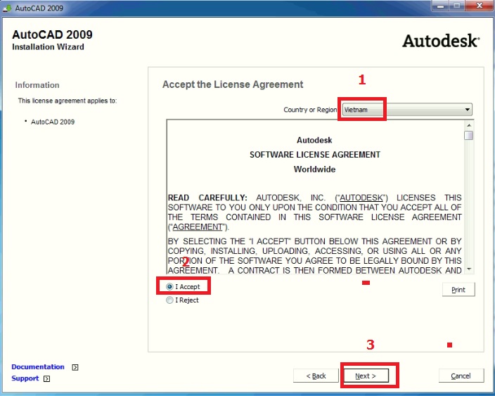 Bước 1: Tải Autocad 2009 giải nén, chạy file “Setup.exe”