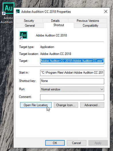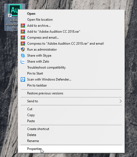 Bước 3: Bấm chuột phải vô Icon Adobe Audition CC 2018 => Properties