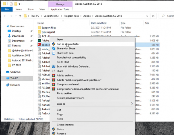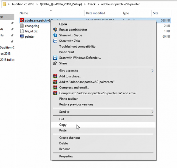 Bước 5: Mở File Adobe Audition CC 2018 vừa tải về copy File trong thư mục Crack.