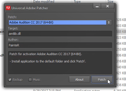 Bước 8: Vô mục chọn đúng Adobe Audition CC 2017 để activate => Patch => Yes